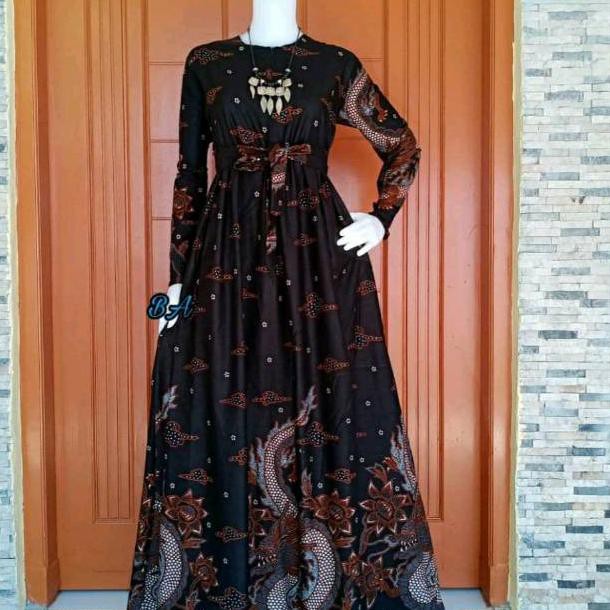 Gamis batik kombinasi yang pas untuk bersilaturahmi rekomendasi model baju gamis terbaru kekinian.
